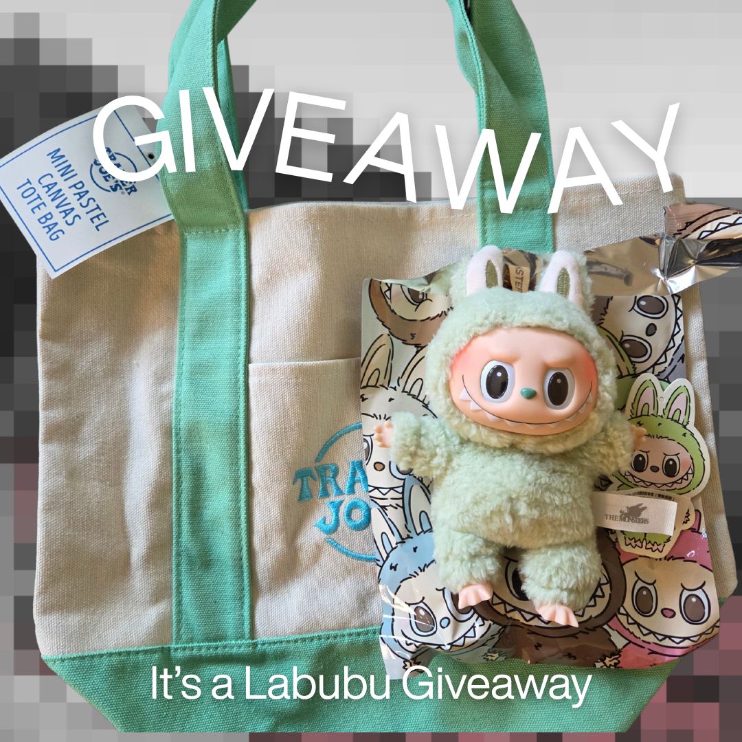 Enter to win this Spring's coveted items! A Labubu & A Trader Joes Limited Edition Tote!